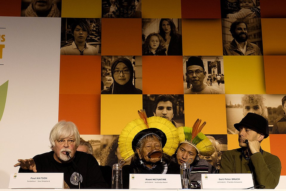 La rencontre entre l’univers marin et le monde végétal ne devait rien au hasard : tous les deux souffrent des mêmes logiques prédatrices, simplement vécues depuis des horizons différents. Convaincu de la convergence des luttes en faveur du vivant, Paul Watson signe la pétition du Cacique Raoni. Par cet acte fort, il s’engage aux côtés de Planète Amazone et des peuples indigènes et ouvre le premier chapitre d’une longue histoire fraternelle. Ses convictions, portées par Sea Shepherd France et Sea Shepherd Brasil, font écho à celles du Cacique Raoni : la défense du vivant n’a pas de frontières, ni de continents.